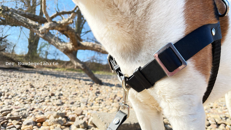 - Bremst den Hund bei Straffung der Leine sanft an der Schulter ab und vermittelt kein Gefühl der starken Bedrohung (Halsband)