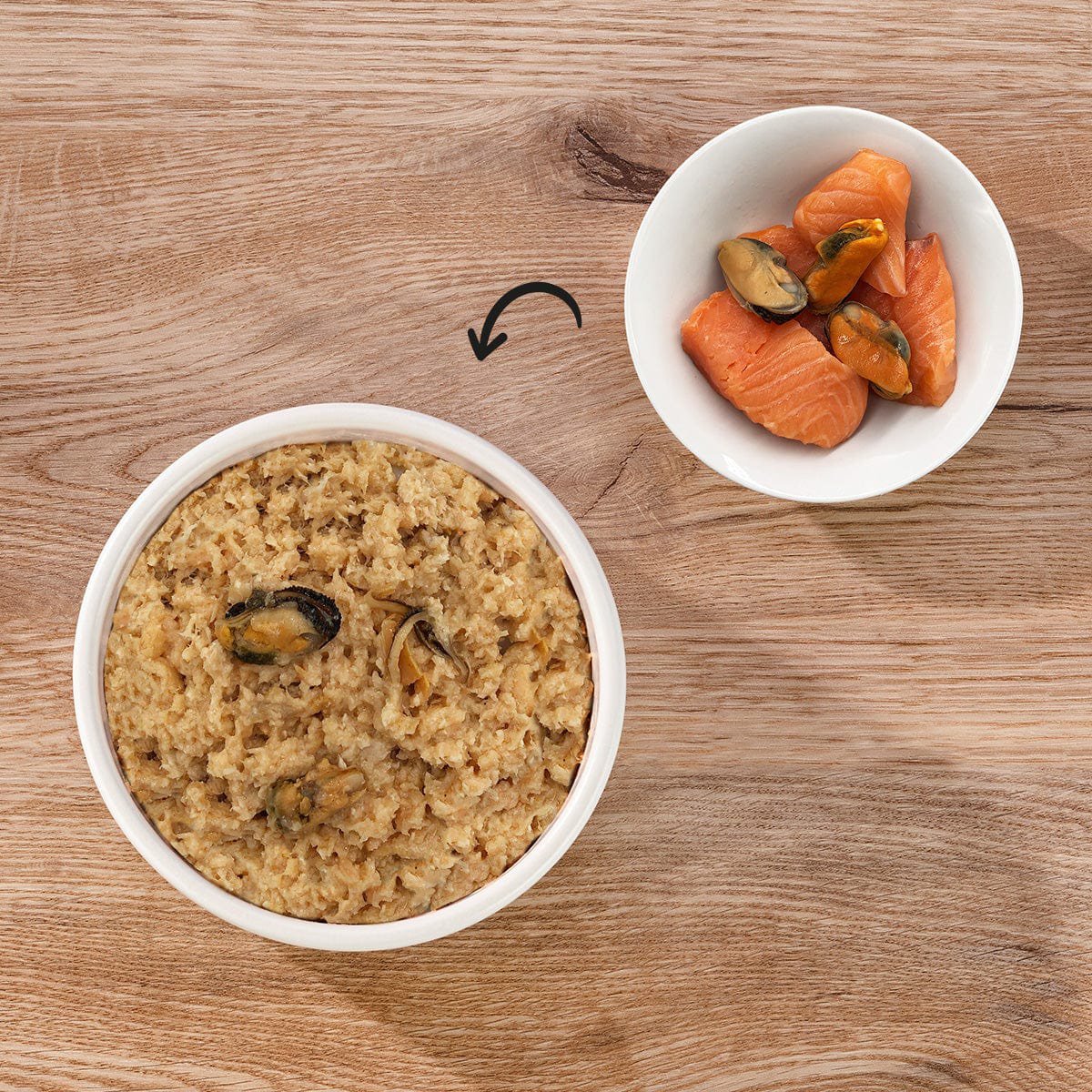 • Mit 60% frischem Fleisch an Lachs & Muscheln