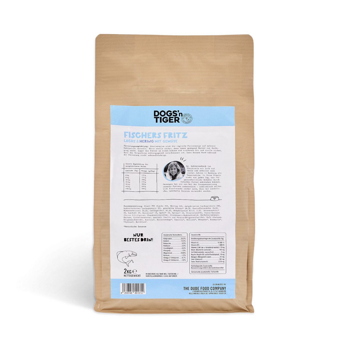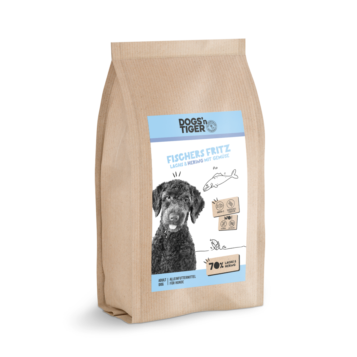 Trockenfutter in bester Qualität für Deinen Liebling🐟🐶 Neben dem hohen Fleischanteil von 70% Fisch enthält unser Trockenfutter “Fischer Fritz” einen Mix aus Äpfeln, Karotten und Spinat und versorgt den Hund so mit wichtigen Vitaminen und Mineralstoffen. Ein reichhaltiger Kräutermix rundet das Futter ab, sorgt für eine ausreichende Versorgung Deines Tieres und kann nachhaltig zum Wohlergehen beitragen. Lachs und Hering sorgen für eine geballte Ladung an essenziellen Aminosäuren und mehrfach ungesättigten Fettsäuren.Alleinfuttermittel für erwachsende Hunde mit 💛 zubereitet