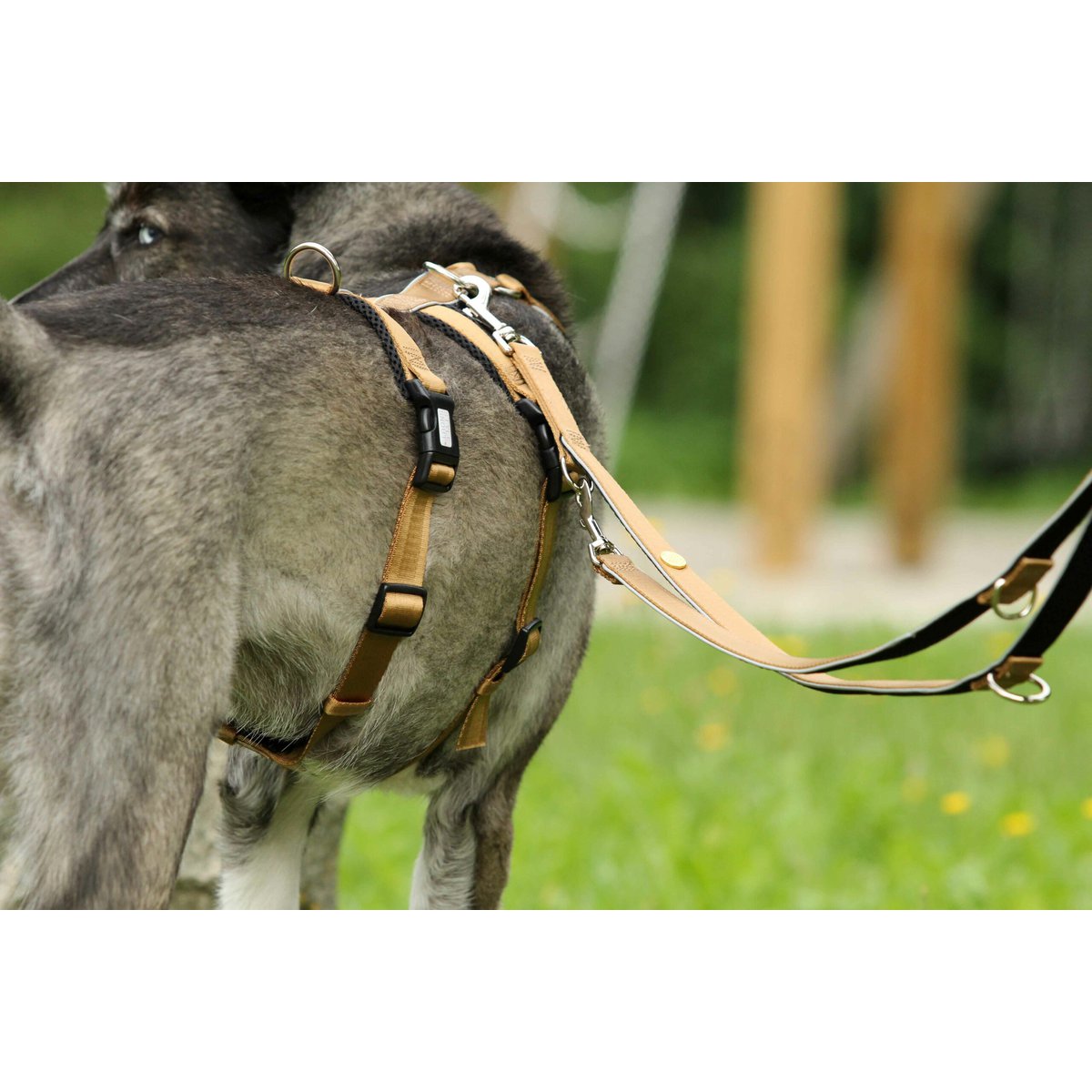 Die Hundeleine der StyleSnout®-Edition besteht aus stabilem Gurtband mit einer starken Zugkraft. Mit der glatten Oberflächenstruktur liegt sie zudem sehr angenehm in der Hand und wirkt in der Farbkombination Silver-Black elegant-sportlich. Die weiche Air-Mesh-Polsterung auf der Rückseite der Leine sorgt für eine gute Führung und Rutschfestigkeit. Bessere Sichtbarkeit in der Dunkelheit garantiert außerdem der reflektierende Außenrand der Leine. Die Führleine ist dreifach verstellbar und die O-Ringe sind verschweißt. Die Original StyleSnout®-Führleine erkennt man an der goldenen Designed FOR STYLE DOGS Niete. Feinwaschgang bei maximal 30 Grad möglich. Nicht für den Trockner geeignet. Größe M: 200 cm Länge x 20 mm Breite Gurtband
