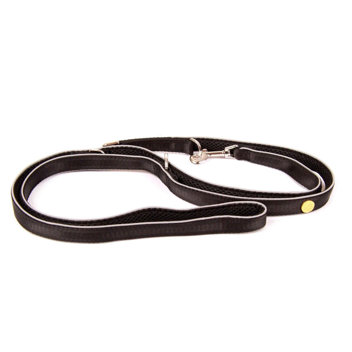 Die Hundeleine der StyleSnout®-Edition besteht aus stabilem Gurtband mit einer starken Zugkraft. Mit der glatten Oberflächenstruktur liegt sie zudem sehr angenehm in der Hand und wirkt in der Farbkombination Silver-Black elegant-sportlich. Die weiche Air-Mesh-Polsterung auf der Rückseite der Leine sorgt für eine gute Führung und Rutschfestigkeit. Bessere Sichtbarkeit in der Dunkelheit garantiert außerdem der reflektierende Außenrand der Leine. Die Führleine ist dreifach verstellbar und die O-Ringe sind verschweißt. Die Original StyleSnout®-Führleine erkennt man an der goldenen Designed FOR STYLE DOGS Niete. Feinwaschgang bei maximal 30 Grad möglich. Nicht für den Trockner geeignet. Größe M: 200 cm Länge x 20 mm Breite Gurtband