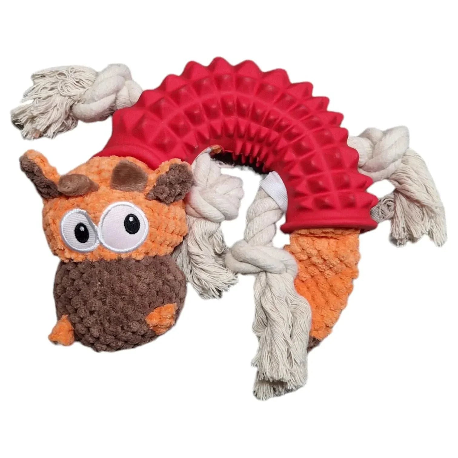 Das Spielen mit einem Tau und den genoppten Oberflächen des Körpers sorgt dafür, dass es zwischen den Zähnen zu einer schonenden Zahnreinigung kommt. Das spielerische Zähneputzen hilft dabei, viele Zahnbereiche zu erreichen und zu säubern, wodurch die Zähne und Ihr Hund gesund bleiben.