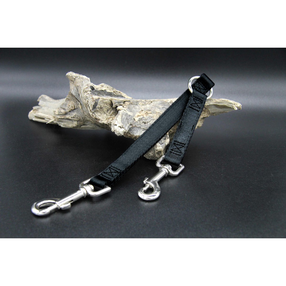 Die Sicherung von ängstlichen und unsicheren Hunden liegt uns besonders am Herzen. Für die optimale Sicherung dieser Hunde, empfehlen wir die Nutzung einer Sicherungskoppel. Die eine Seite der Koppel wird am Halsband befestigt und die andere Seite am StyleSnout®-Sicherheitsgeschirr Patch&Safe oder dem StyleSnout®-Brust-Geschirr Patch&Style. An dem O-Ring in der Mitte ganz einfach die Hundeleine der StyleSnout®-Edition befestigen. So ist der Hund doppelt gesichert und sie können einen unbeschwerten Ausflug mit Ihrem Liebsten unternehmen. Die Koppel kann auch für das Führen von 2 Hunden an einer Leine genutzt werden. Diese sollten sich aber bereits gut kennen und nicht dauerhaft auf dem engen Abstand geführt werden. Die Sicherungskoppel besteht aus aus hochwertigem Gurtband mit zwei festen Karabinern, einem verschweißtem O-Ring und doppelter Naht. Feinwaschgang bei maximal 30 Grad möglich. Nicht für den Trockner geeignet. Die Sicherungskoppel gibt es in der Größe M: 20cm & 10cm Länge x 20 mm Breite
